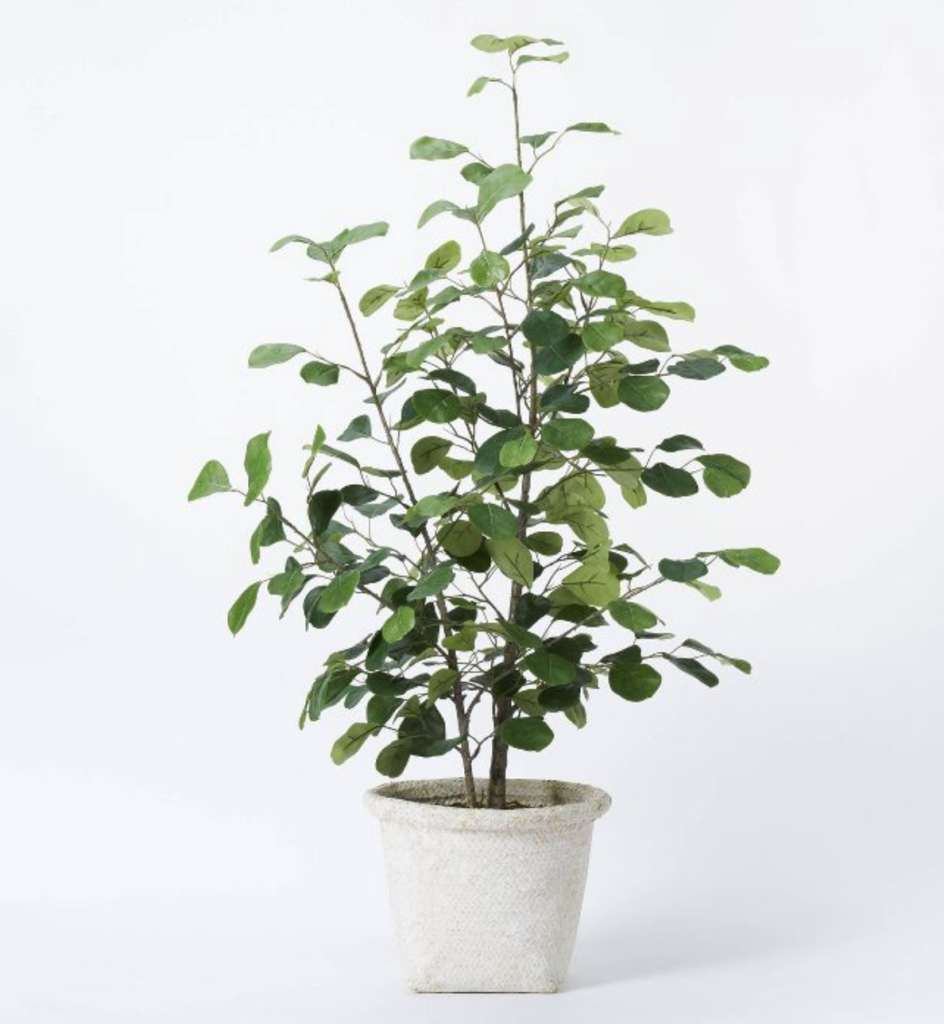 Firstly, we have this small triangle ficus tree which I think would look perfect under the mantel because it’s a larger piece of decor.