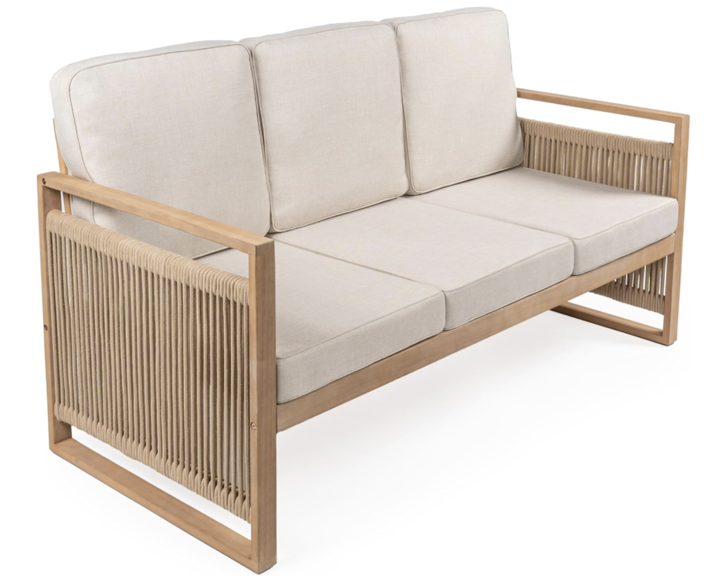 Firstly, we have this gorgeous mid century modern outdoor sofa from Amazon. Outdoor sofas can get expensive fast but this one Mid Century Modern roped acacia wood outdoor sofa with cushions is a great price. All in all, I love the look of this sofa and think it’s an amazing price for what you get.