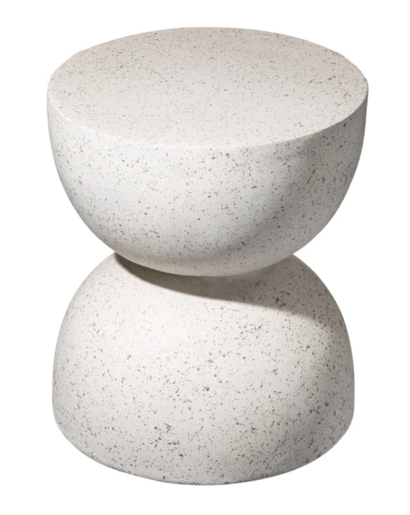 Moreover, check out this unique mid century outdoor side table from Wayfair. This accent stool combines aesthetic appeal and functionality, bringing the curved trend into your space with its hourglass-inspired design featuring symmetric curves, making it a cozy addition to both indoor and outdoor settings due to its durable magnesium oxychloride cement construction.