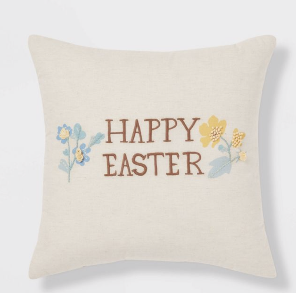 Also, this pillow from Target is neutral and great for adding some Easter decor. This pillow would make a perfect accent on your couch or accent chair.