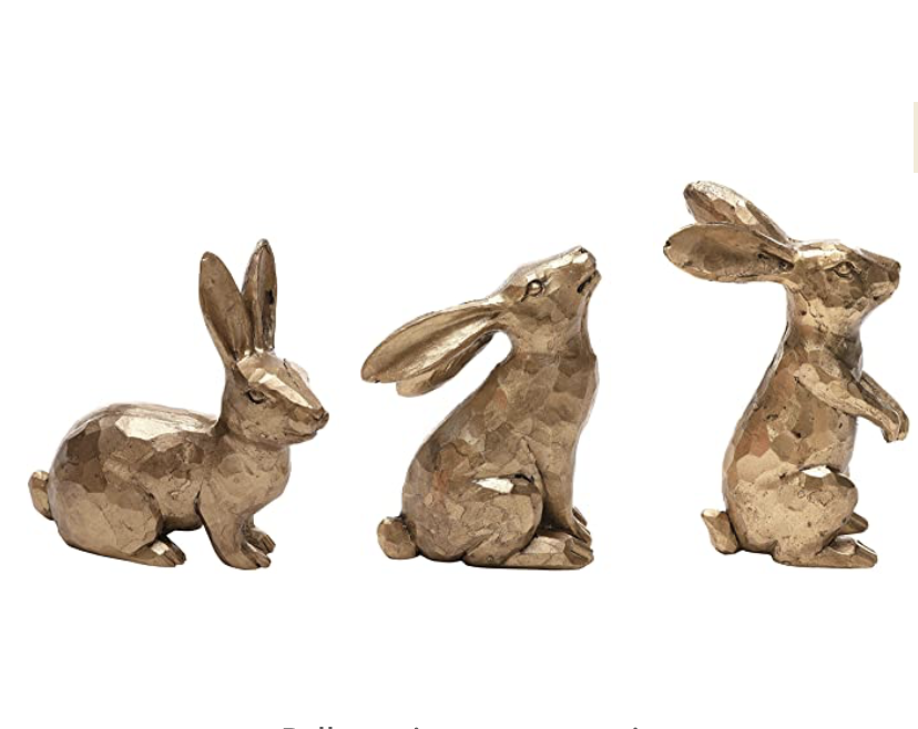 Thirdly, these little golden polyresin Easter bunny figurines are so cute. I love the color of these that makes them look expensive. They are available on Amazon for $21.99 for three of them. I think this is a great deal for such quality bunny decorations.