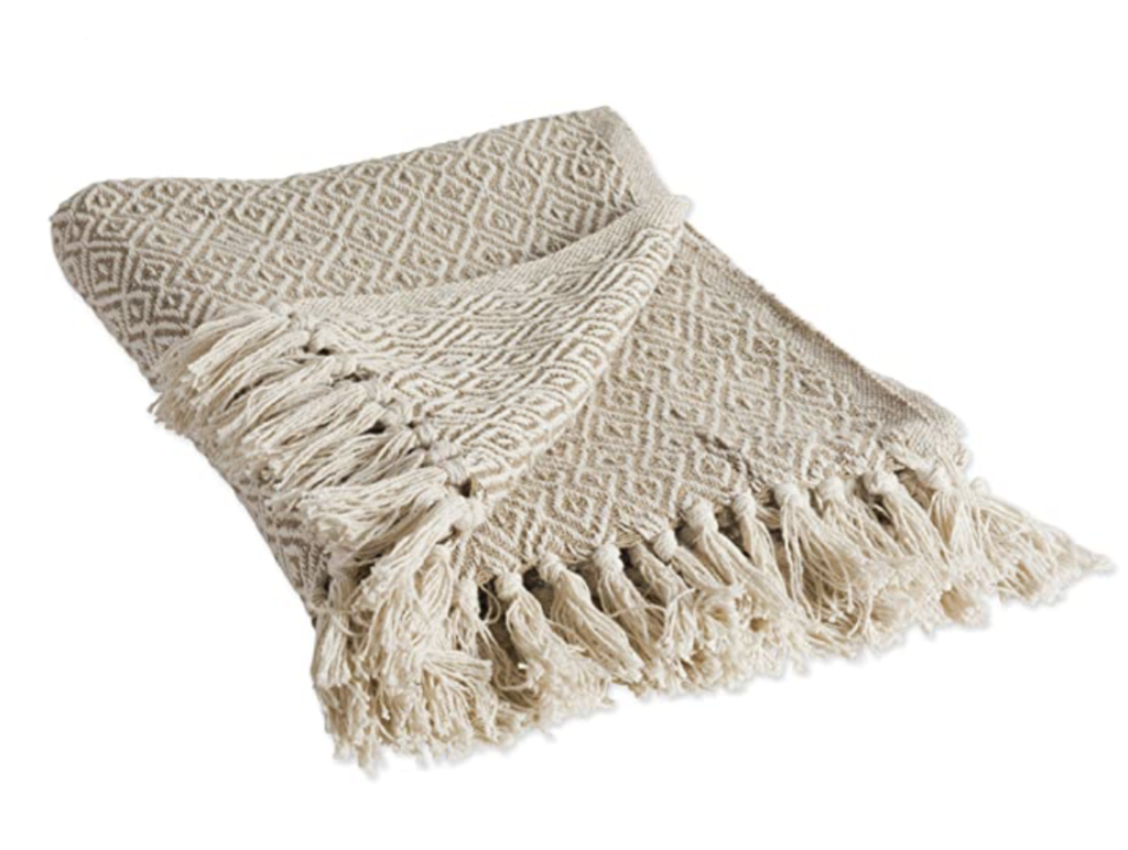 Thirdly, this cotton diamond throw with fringe is perfect. After all, we all need a good throw blanket. I love the sand color and think it is ideal for a coastal living room or bedroom.