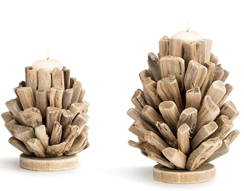 Check out these stunning little driftwood pinecone candles. They are so cute and beachy looking. I think these are the perfect amount of cheesiness and beachiness. They would look good on a coffee table, side table, book shelf, and so many other spots.