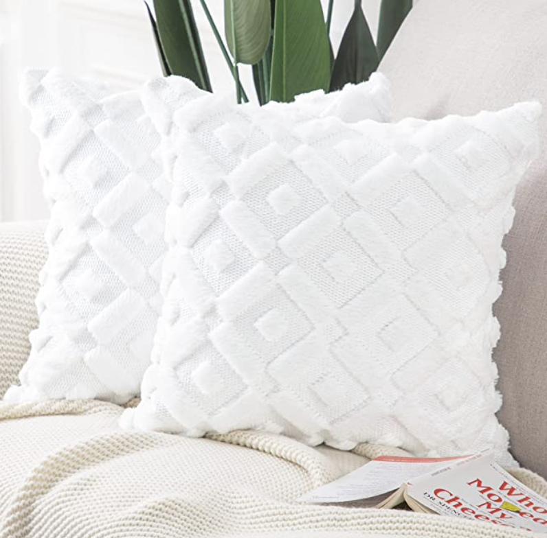 After that, we have these white-colored plush short wool velvet decorative throw pillow covers. Most importantly, I think these are sophisticated yet beachy.