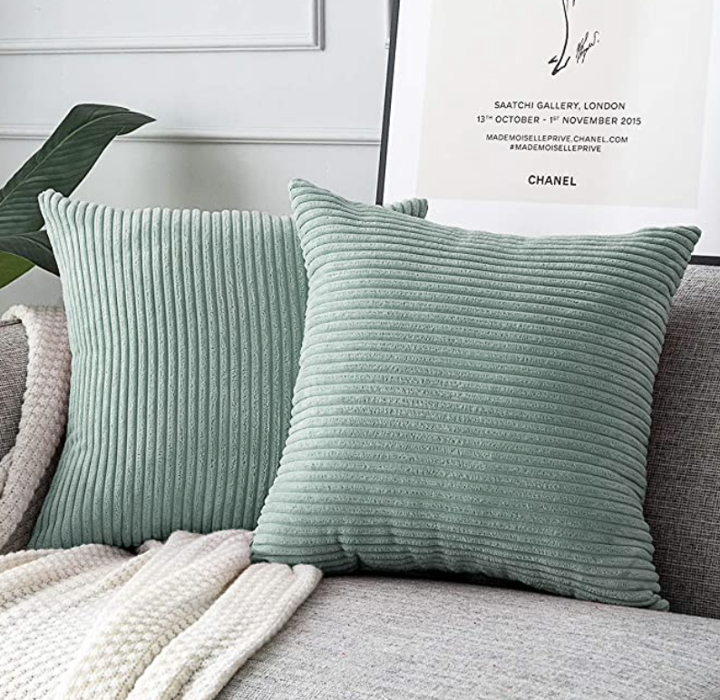 Additionally, these cozy throw pillows are the perfect shade of turquoise. They would look amazing on the couch with some other throw pillows.