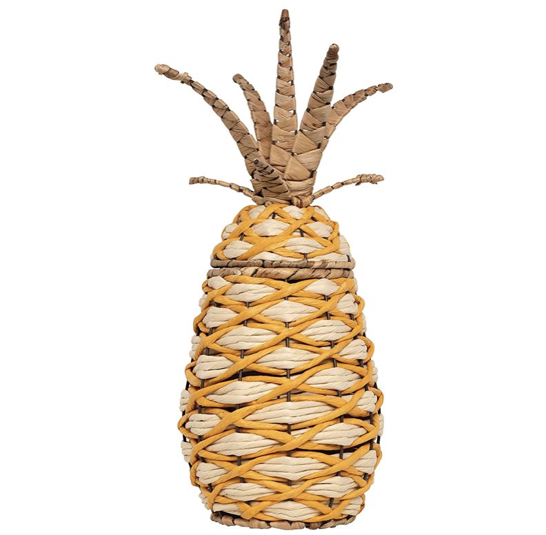 Moving on up, we have this pretty water hyacinth pineapple accent piece. Further, it would look perfect on a kitchen island, coffee table, dining room table, and so much more.