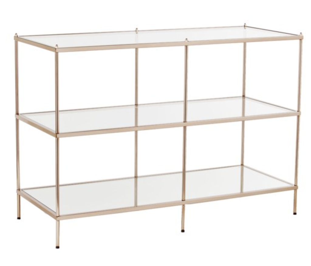 Next, we have this pretty pink coastal entryway look. To re-create this look, check out this Clear and Gold Contemporary Console Table from Walmart. Also, these pink and gold lamps from Wayfair are adorable. In short, this look is stunning.