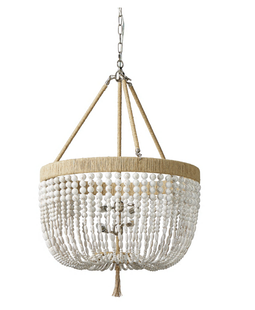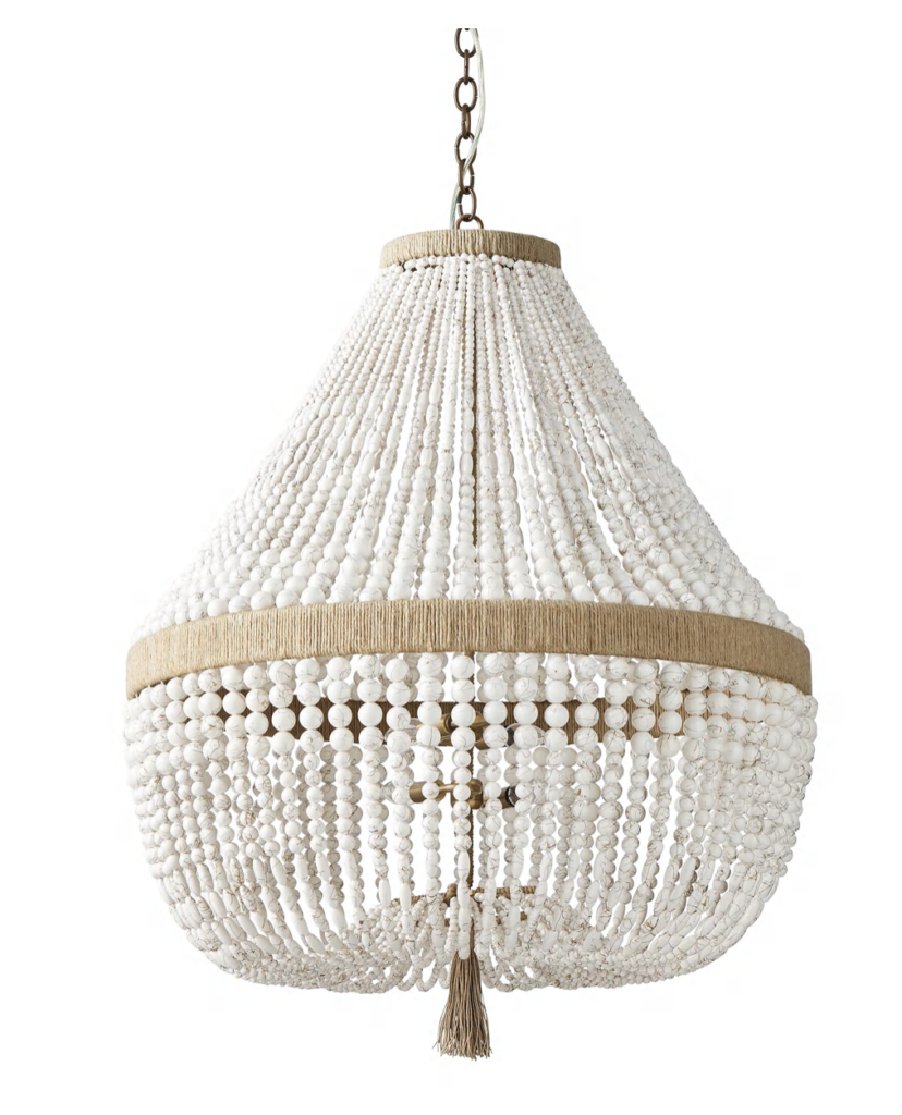 Secondly, the Malibu Chandelier from Serena & Lily is a stunning lighting fixture that features resin beads with gold veining and a hemp-wrapped steel frame. However, this chandelier starts at $2,000 and to me, that’s quite the splurge. After some searching, I found this nearly identical Wood Beaded Chandelier Light Fixture from Amazon nonetheless. And not to mention is just $73!! (It is slightly smaller but still, you can’t beat that price!)
