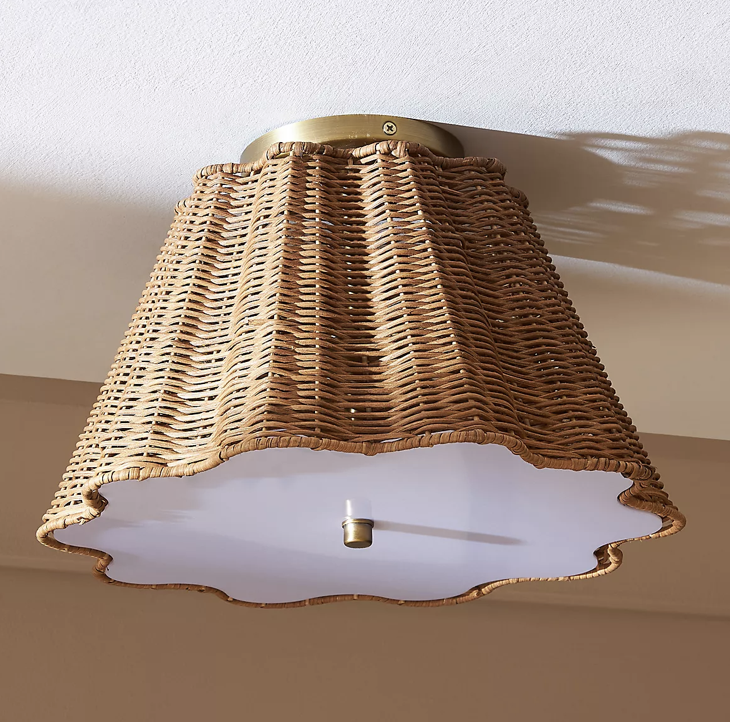 Firstly, we have this beutiful Tamil Semi flush mount from Wayfair. This semi-flush mount ceiling light captures the essence of the coast with its organic design. It’s crafted from natural rattan and bamboo, the cage shade has coastal charm, complemented by brass hardware. Also when illuminated, the light filters through the shade, creating a captivating light and shadow that enhances the ambiance.