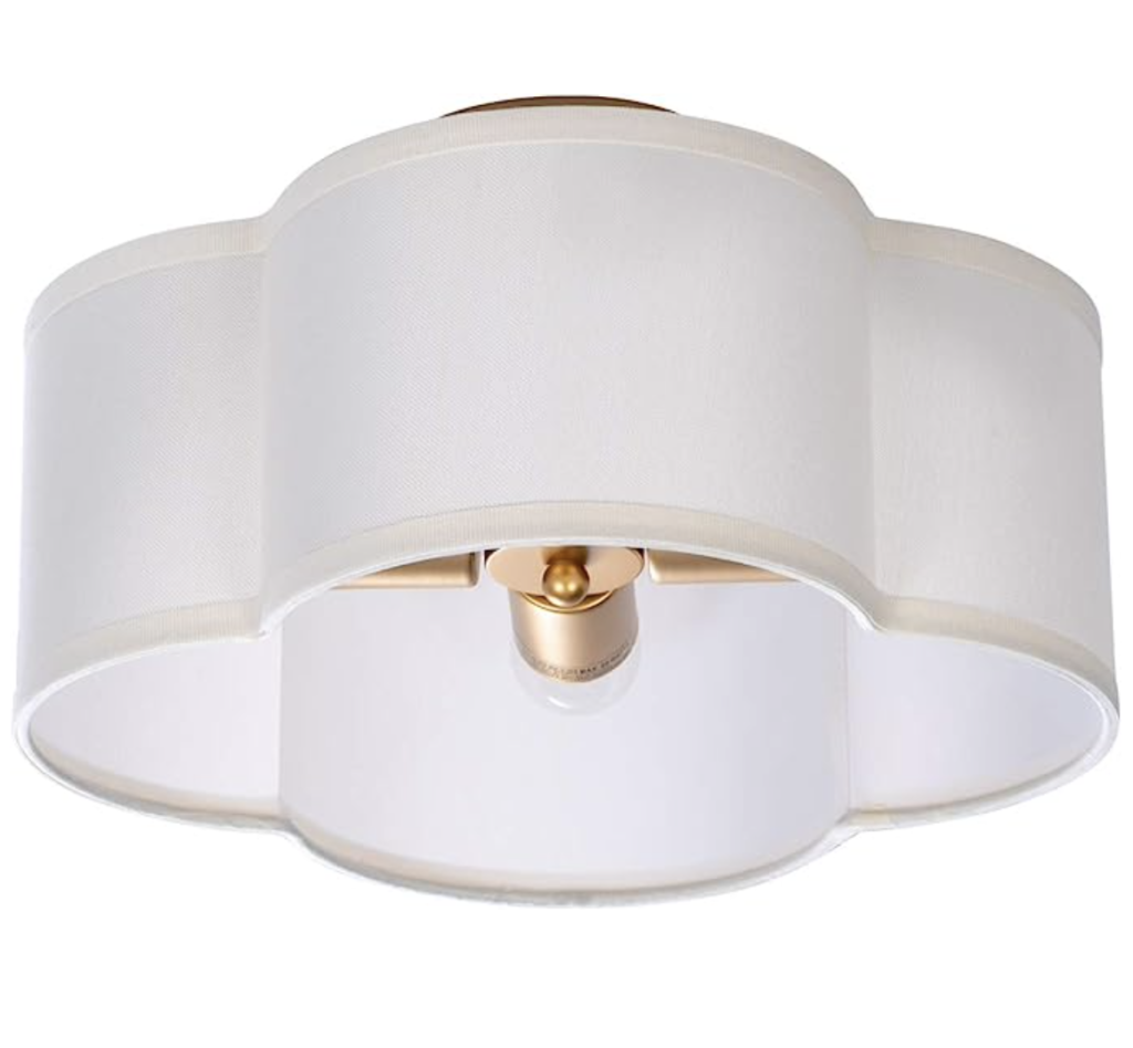 Secondly, we have this VILUXY Semi-Flush Mount Ceiling Light from Amazon. It features a cream white fabric drum shade and an antique brass brush paint finish. With its soft and inviting glow, I think it would be perfect in a foyer. Not to mention this light is under $100 and has great reviews!