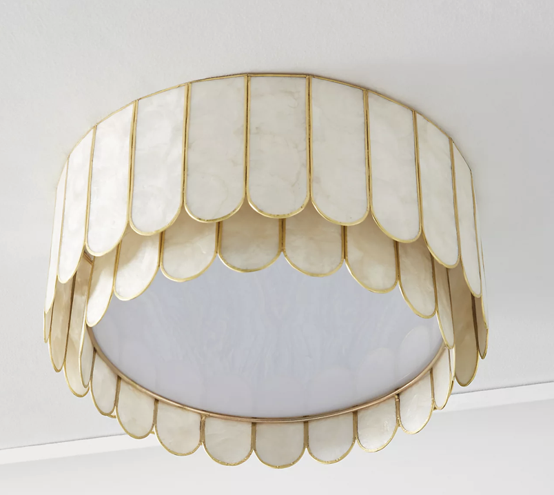 Next, we have this gorgeous Madelyn Capiz Faceted Flush Mount from Anthropologie. I am obsessed with this light and how it perfectly combines elegance and coastal charm. Its unique design features a faceted shade crafted from capiz shells, which create a display of iridescent colors and subtle shimmer when illuminated. The flush mount design allows the fixture to sit close to the ceiling, making it a versatile option for rooms with lower ceilings or spaces that require a sleek and streamlined look. To conclude, the Madelyn Capiz Faceted Flush Mount is a statement piece that will enhance your foyer.