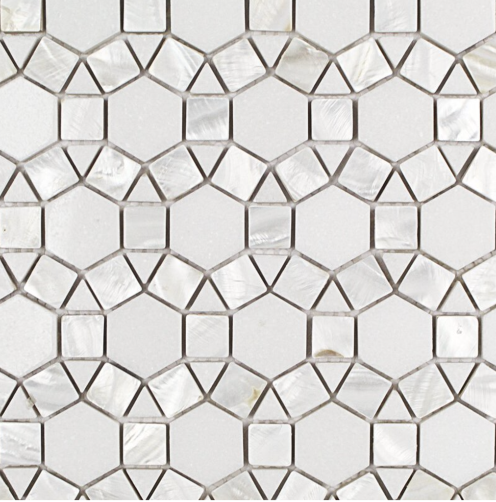 8. Noble White 9-3/4 in. x 12-1/4 in. x 10 mm Polished Pearl and Marble Mosaic Tile