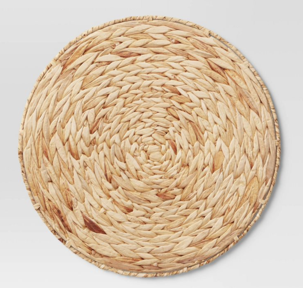 Further, we have this pretty coastal patriotic tablescape. One of my favorite features here is these Water Hyacinth Charger Placemats from Target. Another item that I love is this wooded bead garland, not to mention it’s only $3.99 on Amazon. Also, these red white and blue cloth napkins are perfect for the 4th of July. Lastly, I love the idea of having little pint containers of berries, it’s so cute.