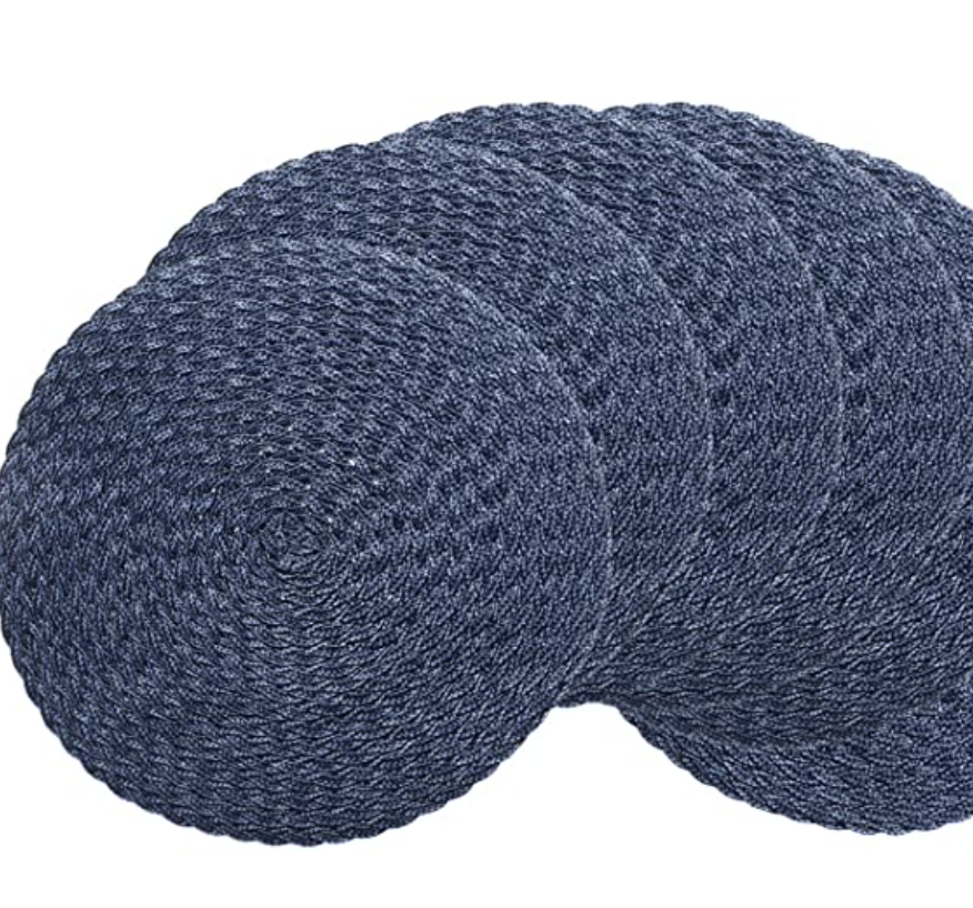 Firstly, we have this coastal patriotic look that I’m obsessed with. The first thing I want to talk about is these Round Braided Placemats from Amazon. Additionally, this hand-polished Matte Gold White Flatware Cutlery Set is pretty and has great reviews. Moreover, these striped cotton dinner napkins are perfect, not to mention they have raving reviews as well. Lastly, I want to highlight these stunning navy blue-footed Iced Beverage Goblets. In short, if you like this 4th of July tablescape, you can easily recreate the look using the items below.