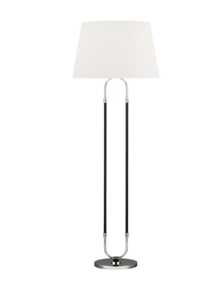 Next, we have this polished nickel floor lamp from Wayfair. I love this timeless design and love the pop of black.