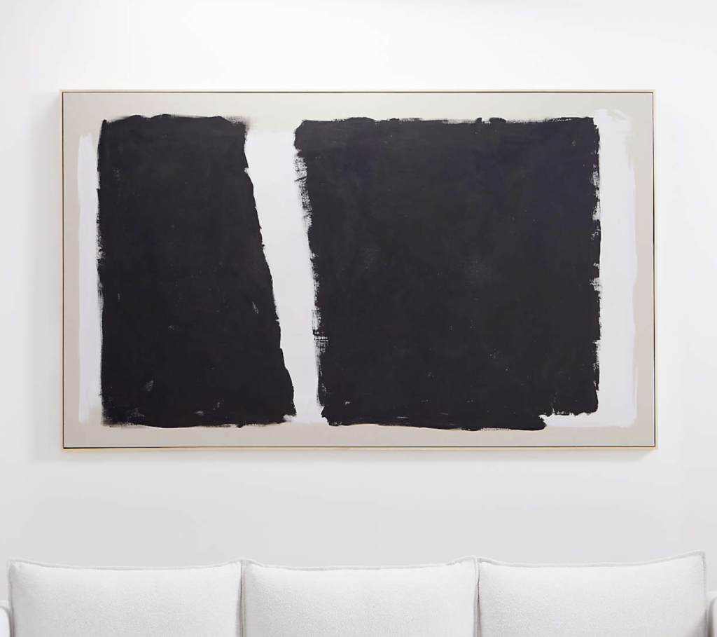 Lastly, we have this ‘dark modern moment’ framed hand-painted raw canvas wall art from Crate & Barrel. It is safe to say that I am obsessed and would look amazing in a black bedroom decor design.