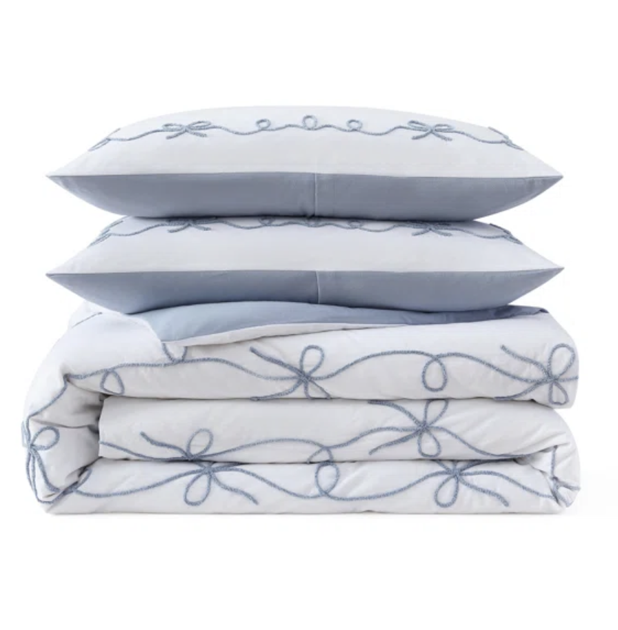 Next, we have this light blue coastal bedding sent from Quince. I’ve heard great things about Quince however I’ve never ordered anything from there. Nonetheless, this set is 100% organic cotton, the color is perfect, the price is good, and the reviews are good.