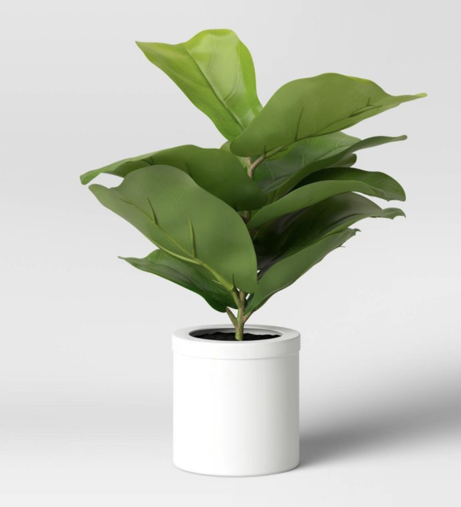 Secondly, to complete the space is some greenery. If you’re looking for a nice fake plant, I recommend the one below from Target. It’s a fake fiddle leaf plant and it has many great reviews.