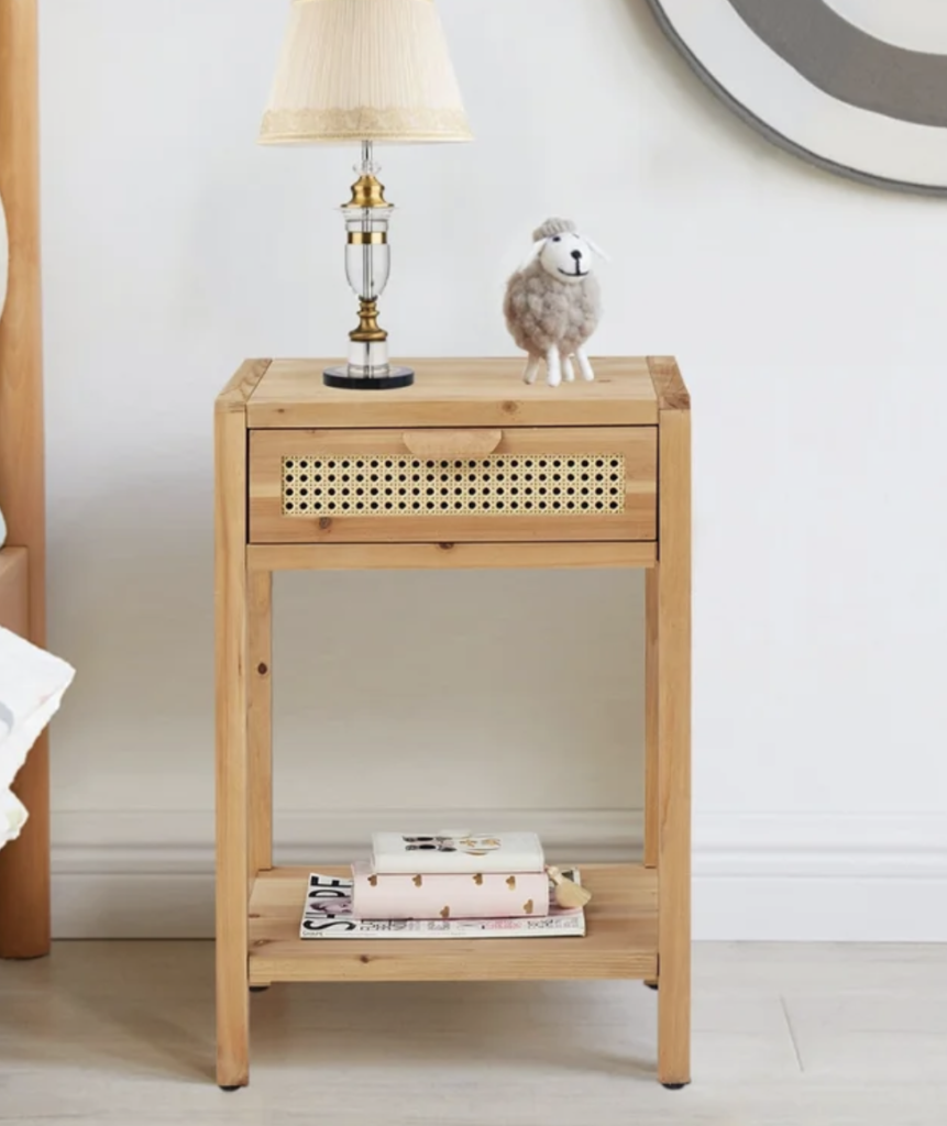This bedroom look is so earthy. Firstly, you will need one of these nightstands. I tried my best to find you the cheapest option, the one below is under $150.
