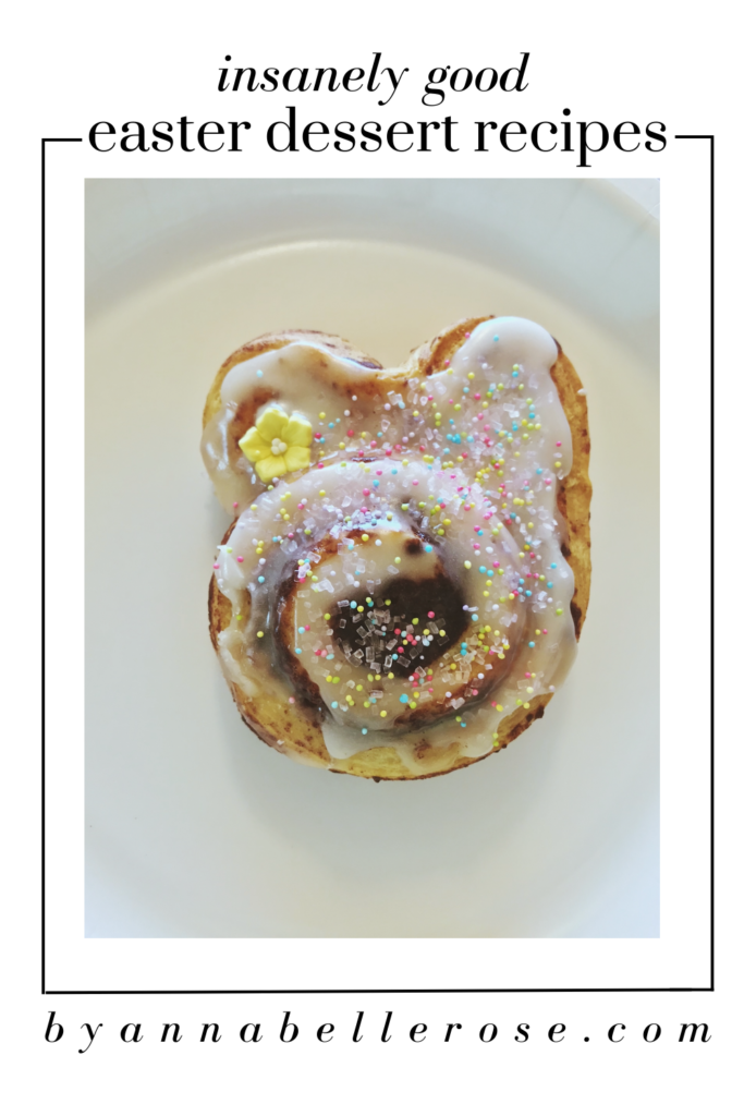 How cute are these easter bunny cinnamon rolls which are incredibly easy to make. All you need are some Pillsbury refrigerated cinnamon rolls and some festive sprinkles! All in all, these are super easy and who doesn’t love cinnamon rolls?!