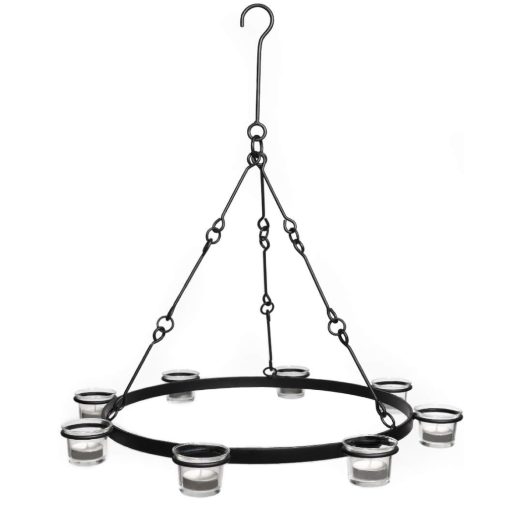 Next, we have this 6-Candle Sunjoy Hanging Chandelier which doesn’t require any electrician of construction of any kind since it uses candles. This chandelier is the perfect option if you want something very affordable but will add so much to your outdoor space. This piece can pull your outdoor space together for under $50!