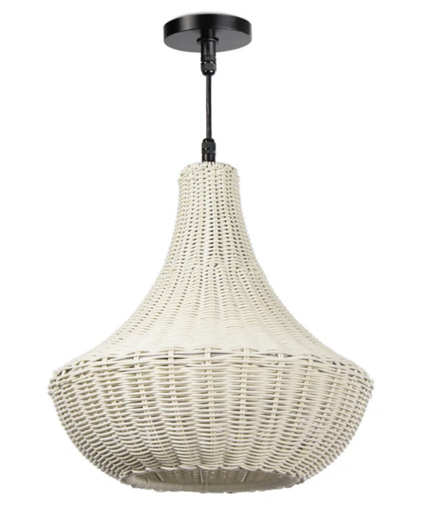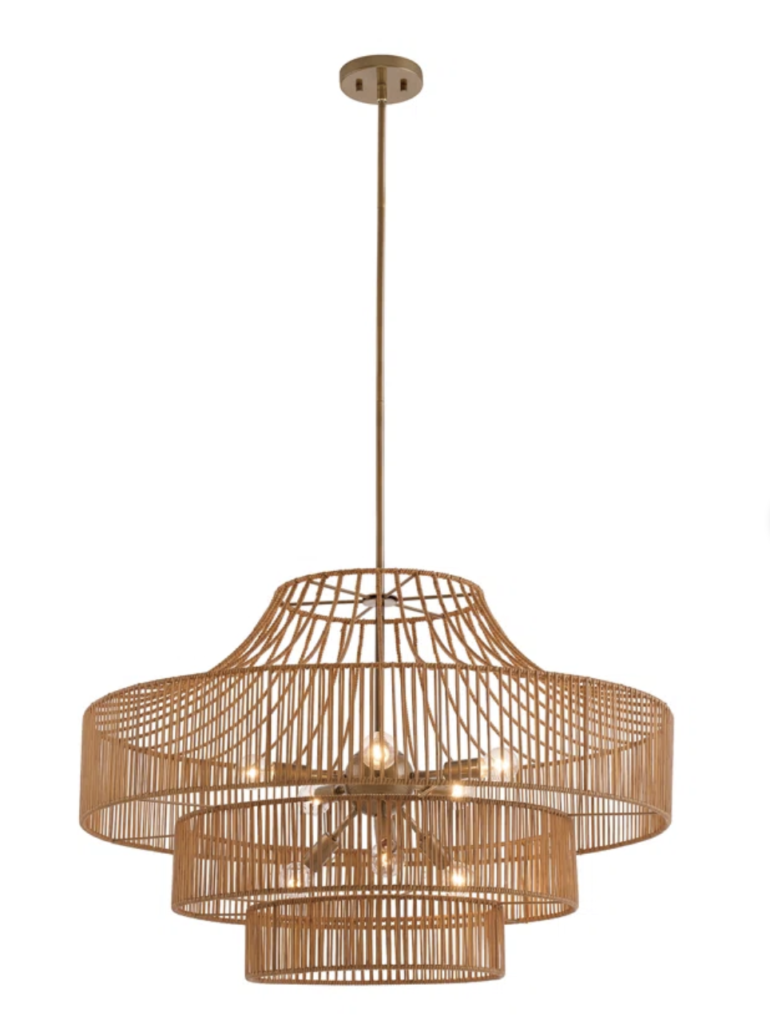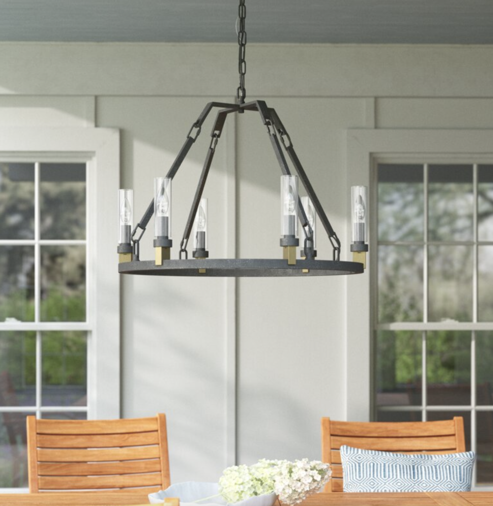 Another great chandelier option from Wayfair is this from Bayou Breeze. This chandelier features a multi-tiered rattan resin shade and a Burnished Brass finish that adds sophistication. When it comes to finding outdoor chandeliers, good options are lacking and this is one of the good ones!