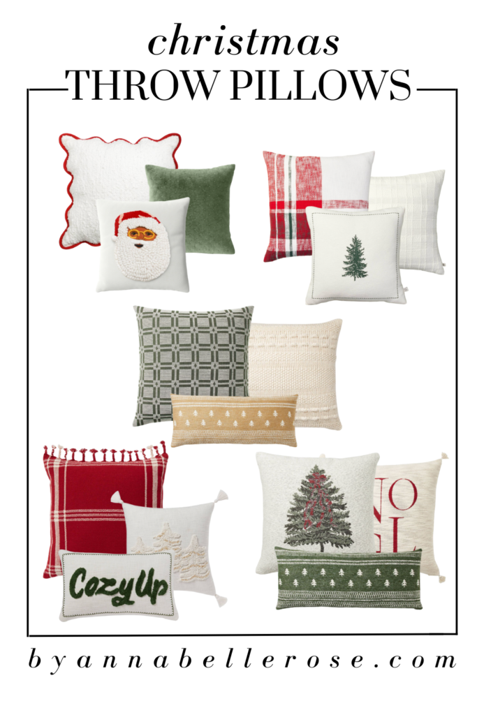 In this post, I will be sharing my favorite Christmas throw pillows that I think you are going to love just as much as I do. I don’t know about you but I love shopping for festive throw pillows. In case you weren’t aware, every holiday season Target comes out with the cutest throw pillows! (Not just for Christmas, but all holidays).