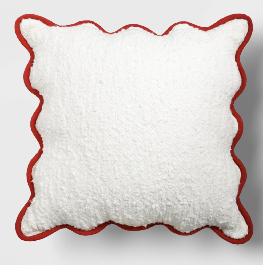 Firstly we have this sweet Christmas pillow combination that I love. I am obsessed with this oversized Faux-Boucle Square Throw Pillow with its soft solid-color faux-boucle material and scalloped trim. (The scalloped trim comes in red or green). And how cute is this festive square Santa throw pillow? Finally, to complete this throw pillow combination, this green Quilted Velvet Square Throw Pillow is the perfect finishing touch.