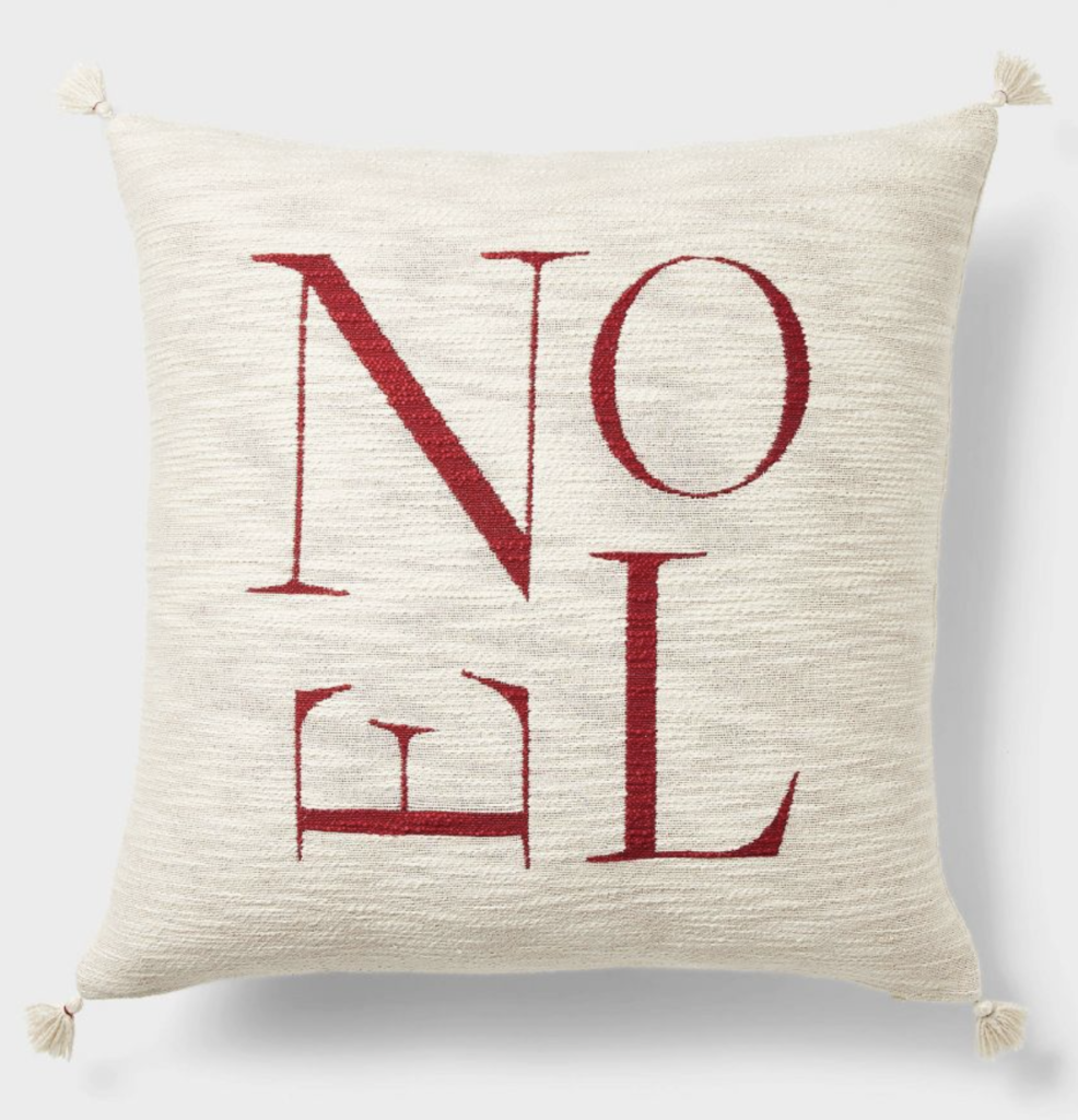 Finally, we have this stunning Christmas throw pillow combination that I think you’re going to love just as much as I do. I think this Woven Tree Square Throw Pillow is so sweet and pretty. And to go along, I love this festive Woven Noel Square Throw Pillow. To complete this sweet Christmas throw pillow combination is this green and cream Oversized Lumbar Woven Tree Pillow.