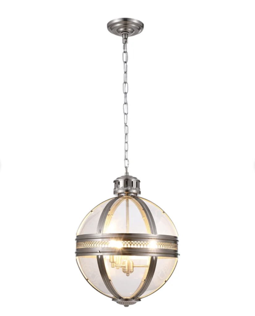 Here is another gorgeous coastal dining table look. One of the main components that I am obsessing over is this Coast to Coast Imports Orchard Park Dining Table in White from Bed Bath Beyond. To go along, with this show-stopping table are the Camille dining chairs from ZGallerie. Finally, to complete the look these globe chandeliers are perfect. In short, I think this coastal dining room table inspiration is simple yet beautiful.