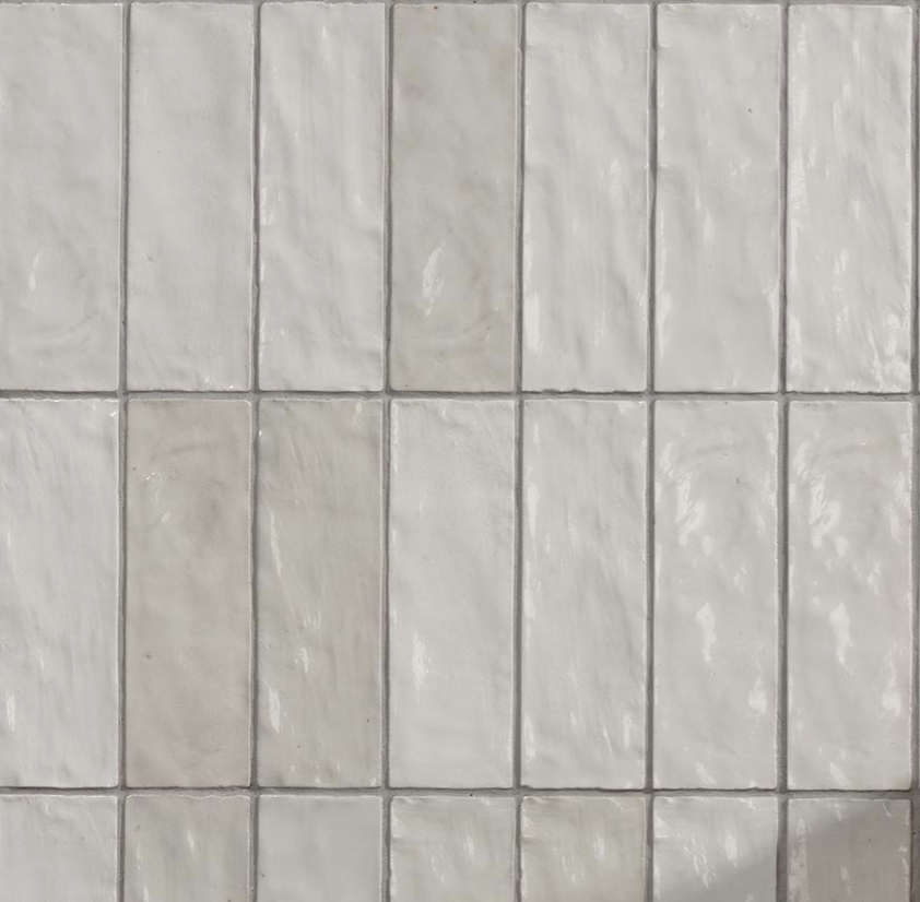 How amazing is this kitchen design!? I love the interlocking fireclay tile in the colors chain and mist that create such an incredible eye-catching design. To summarize, this kitchen design is stunning from the white kitchen cabinets, and backsplash, to the parquet pattern of glazed thin brick on the floors.