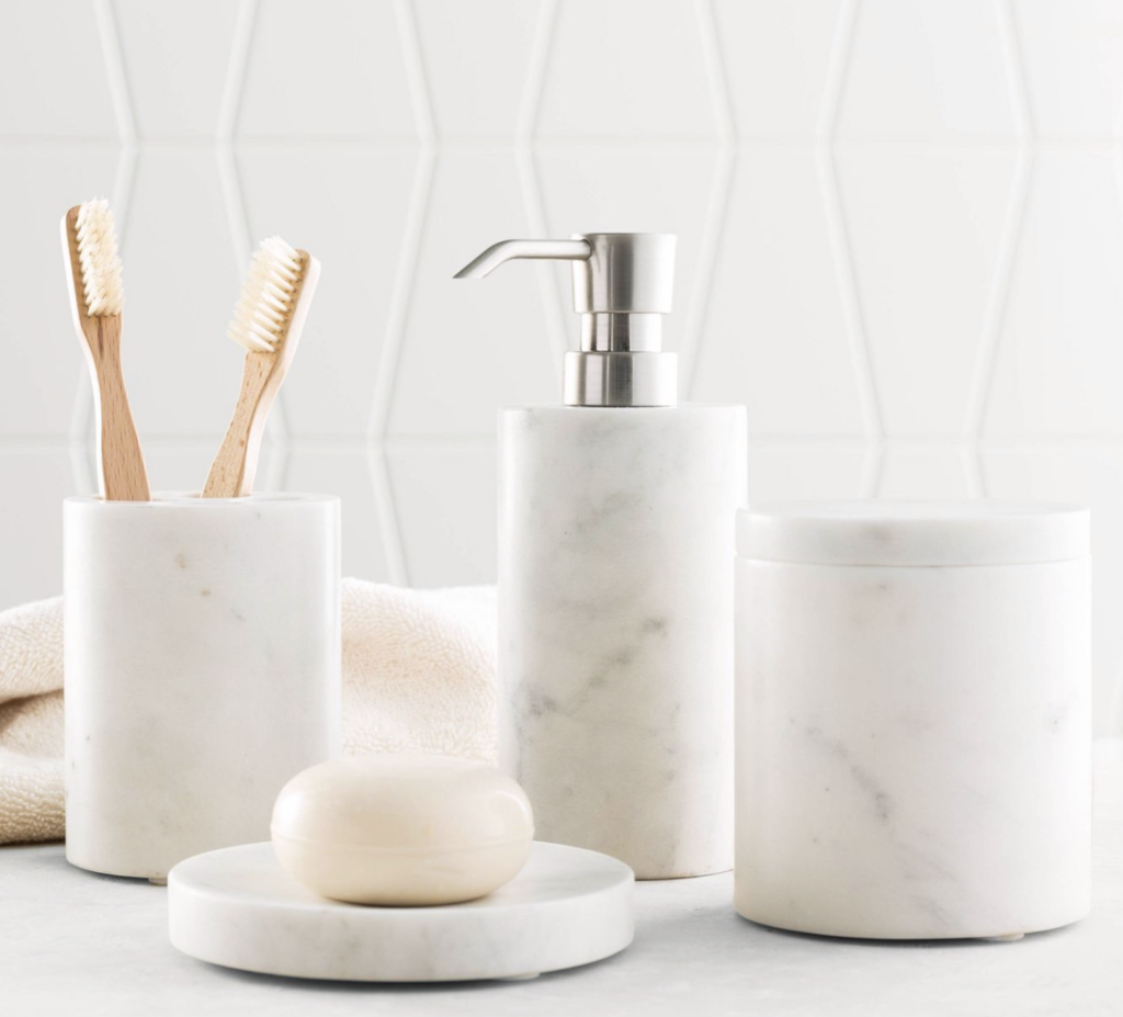Another essential for the bathroom is a 4 piece set like this one. I am obsessed with this marble bath coordinate set from Threshold™. I love the marble and think it will look stunning on any bathroom counter.
