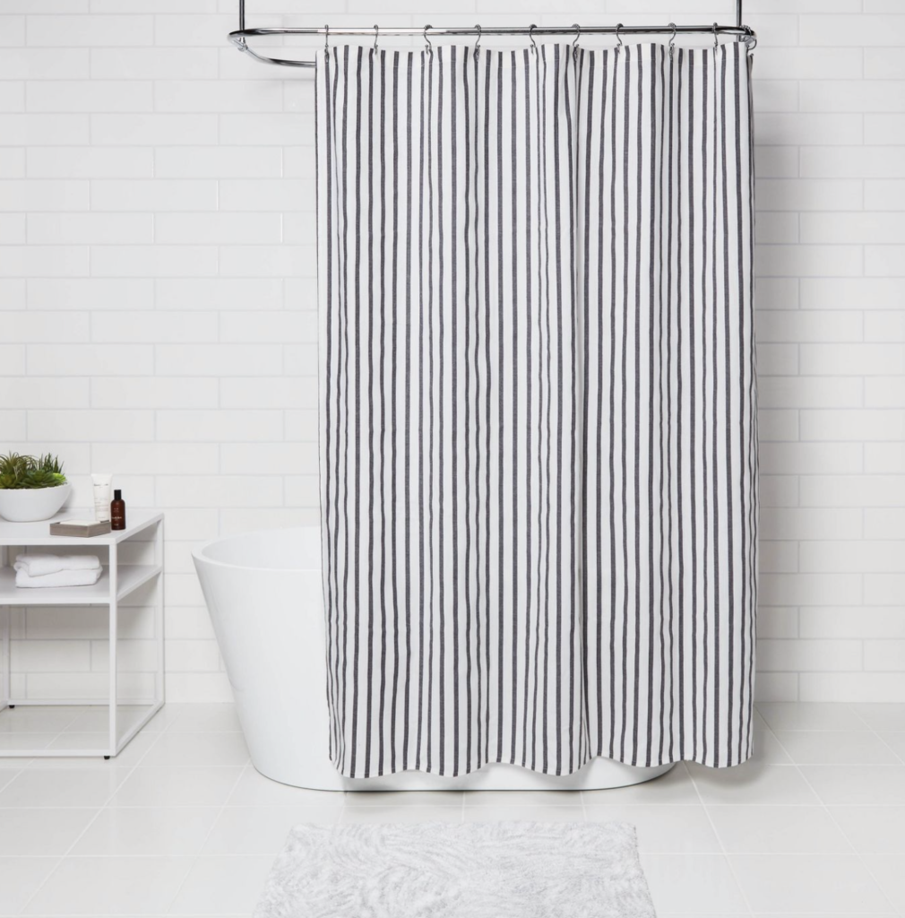 In addition, this striped black and white shower curtain from Project 62™ is perfect for refreshing the bathroom. I love the vertical stripes and the modern look.