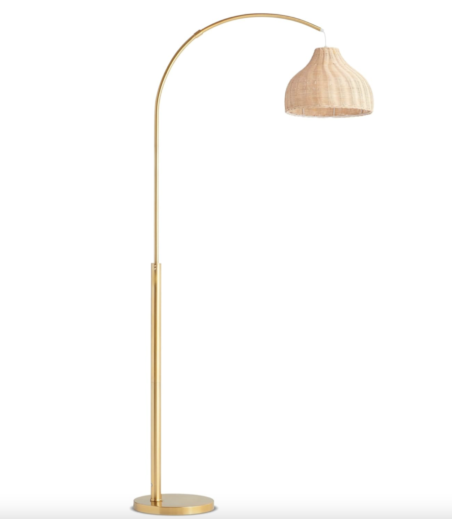 Finally, let’s discuss lighting. I thought this Brightech Lark Arc Lamp from Amazon was a great option overall for a coastal living room. Also, this Mini Rattan Wrap Stick Table Lamp Brass from Target is so cute and perfect for an end table.
