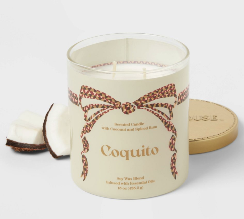 Secondly, we have this adorable 2-Wick Bow Pattern Coquito Candle. This candle is filled with the sweet scents of vanilla and almond, it comes in a simple cream glass jar with a cute bow pattern on the front. It’s a perfect addition to your home and it smells fantastic!