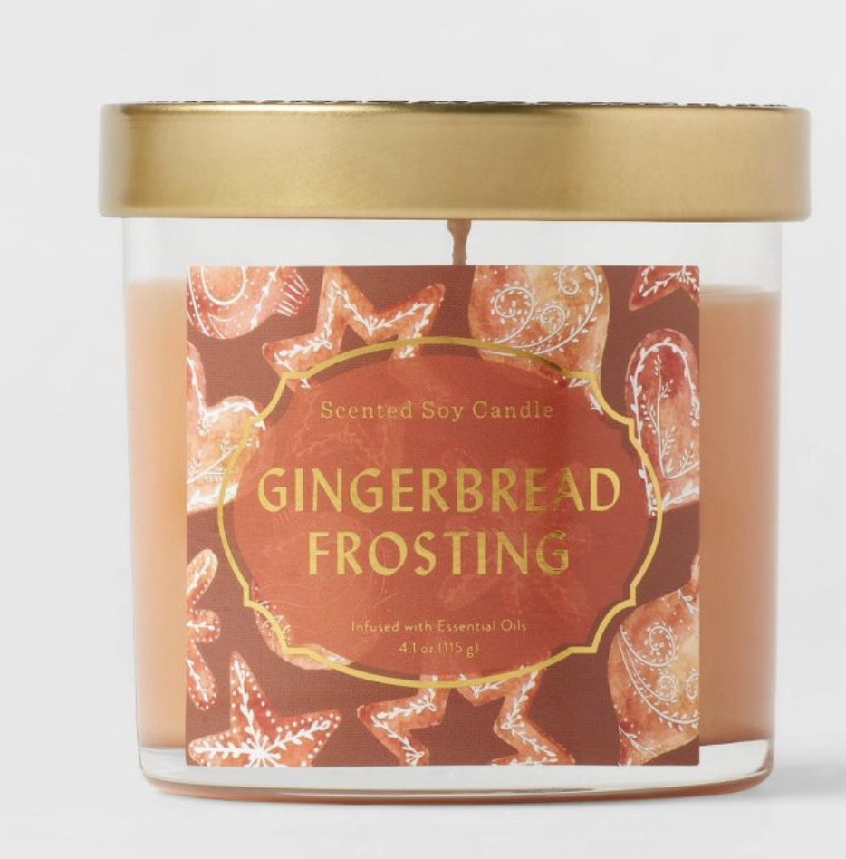 8. 4.1oz Lidded Glass Jar Gingerbread Frosting Candle