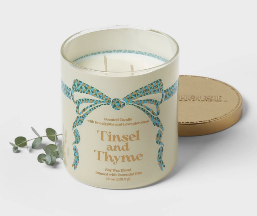 Moving along we have this cute bow pattern tense; and thyme-scented candle. This candle comes in a 15oz cream glass jar with a charming bow pattern, complemented by a matching metal lid. With dual wicks, it provides a cozy, even glow. What’s more, it’s scented with the soothing fragrances of eucalyptus and lavender snow to enhance your relaxation.