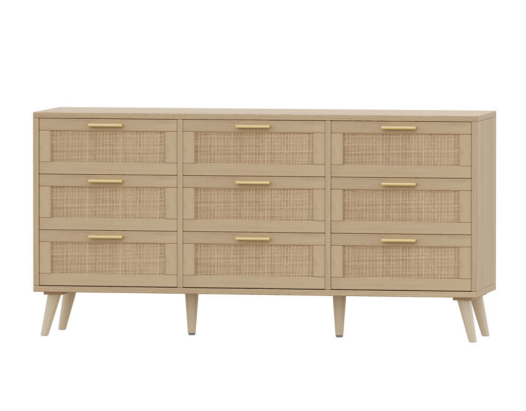 Moreover, we have this 9-drawer light wood rattan dresser from Wayfair. If you’re looking for a dresser with 9 drawers with a modern twist then this one might be for you. It is also a great price!