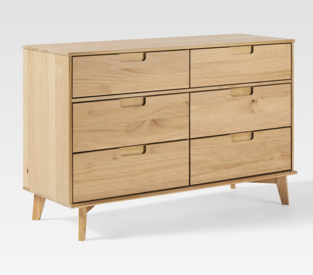 Firstly we have this 6-drawer light wood dresser from Wayfair. If you’re looking for a basic dresser that is light wood and is affordable then this one is perfect. For $285 I think this dresser is a great option.