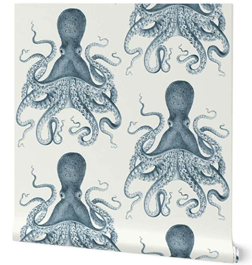 I don’t know about you, but I am obsessed with sea animal wallpaper designs. This octopus wallpaper is no exception, I am obsessed. Altogether, this wallpaper is welcoming and fun, yet elegant and sophisticated.