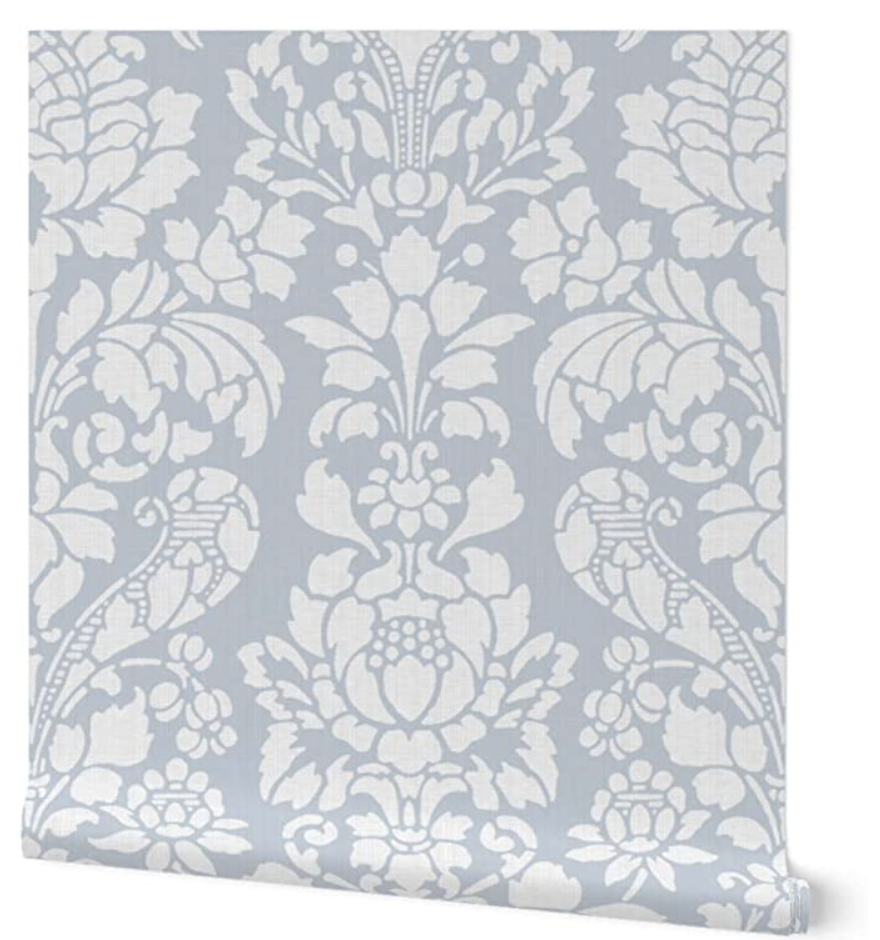 Moreover, we have this elegant light blue pastel floral vintage style wallpaper. Although it is more vintage than coastal, you could easily design it with coastal pieces. For instance, you can swap the mirror pictured above for one like this rattan woven mirror.