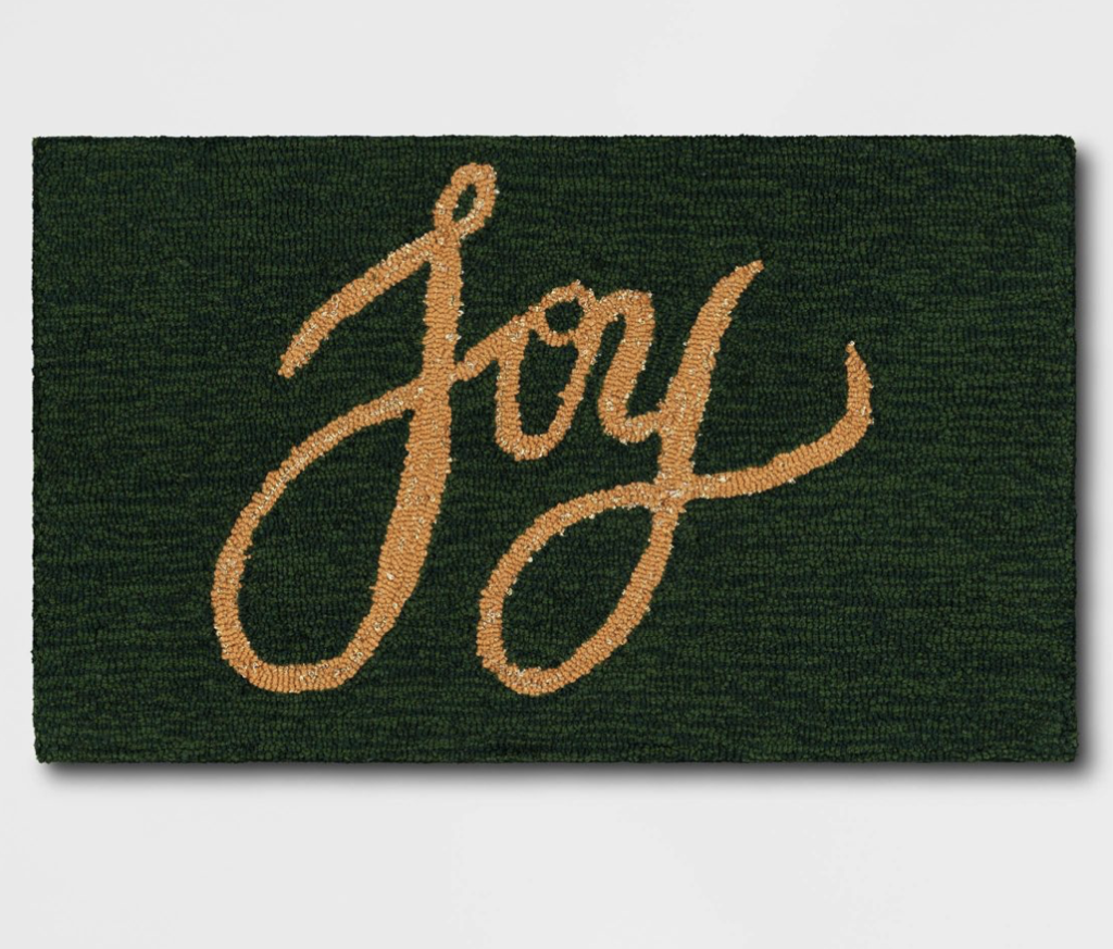 Thirdly, we have this fun Joy Rectangle Handmade Hooked Indoor Accent Rug designed by Threshold. I think this would look great next to the kitchen sink or even as an indoor welcoming mat. There are so many places you can put this rug which will add some festivity to your space.