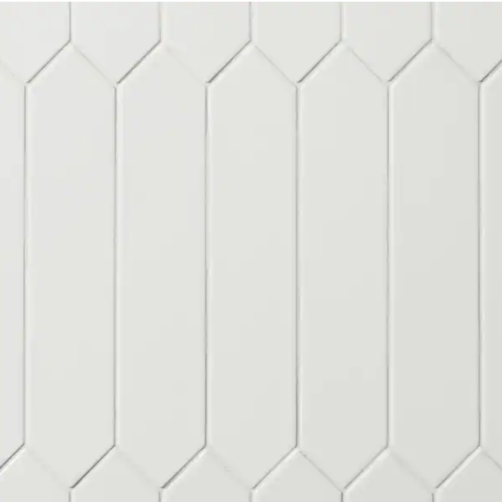 Lastly, we have this pretty polished picket ceramic wall tile. Similarly, I feel like I don’t see this backsplash that often, but maybe that’s just me. Although, I think this tile would look good both horizontally and vertically. As a result, I recommend laying out the tile in both ways to see which layout you like more.