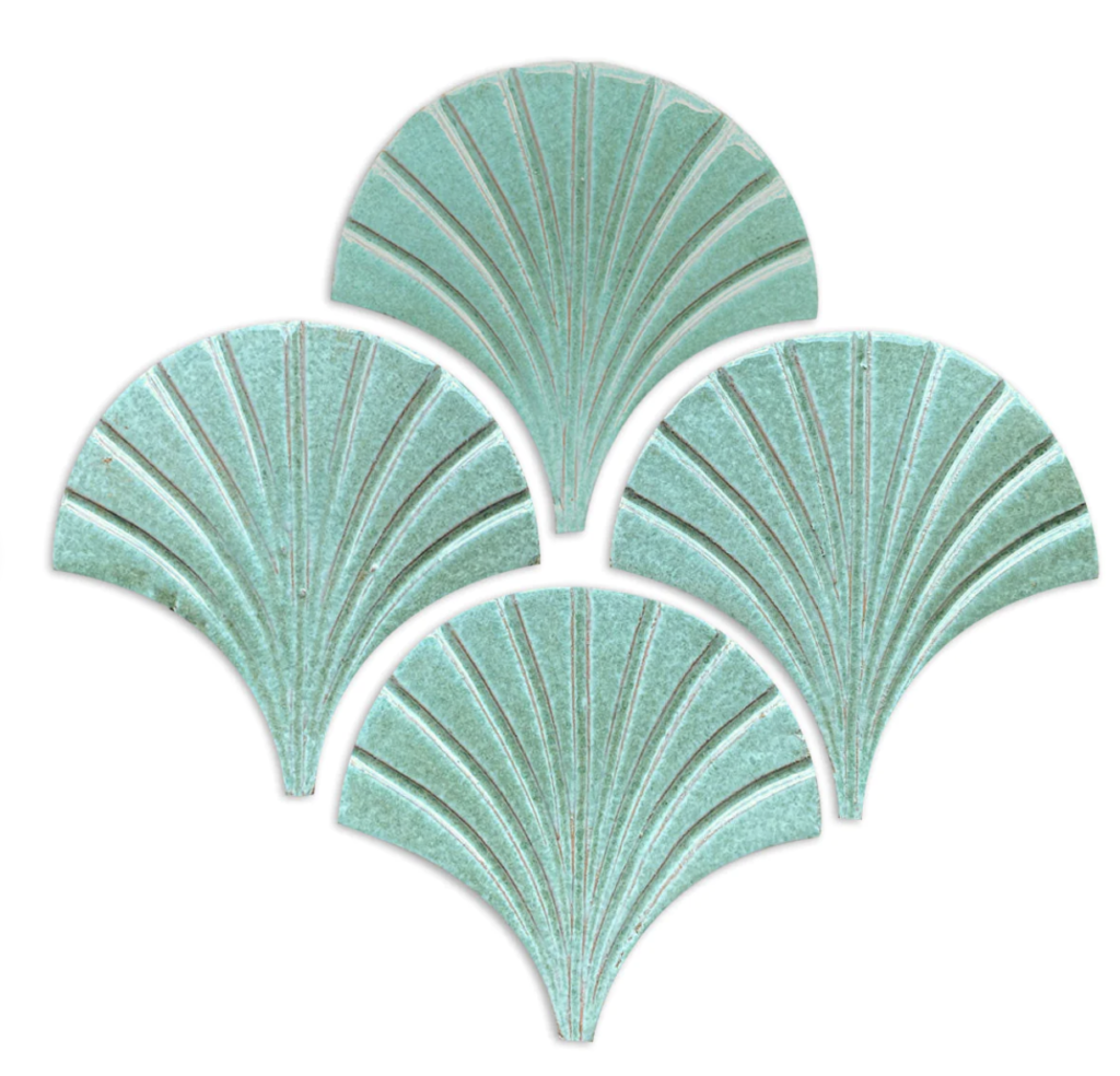 Secondly, we have this gorgeous shower/tub design that I am in love with! How pretty is this tile? I love that it looks like shells and the color is so pretty.