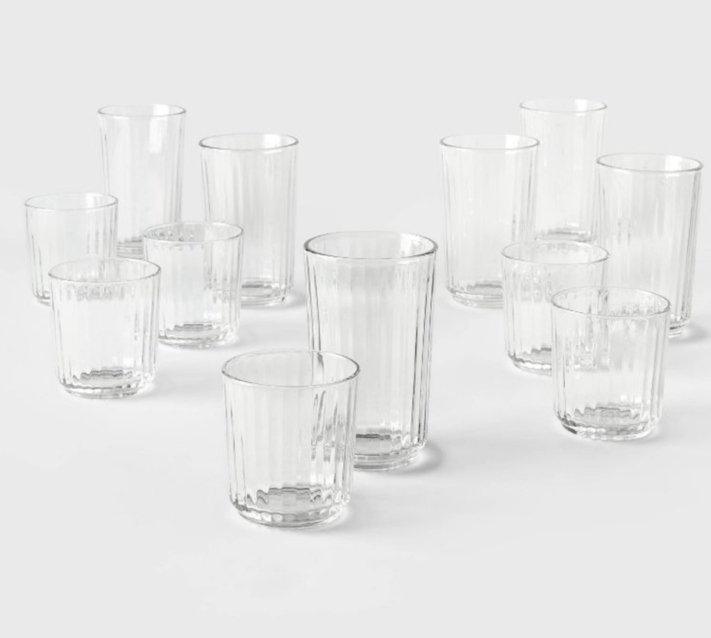 Thirdly, let’s talk about Target’s glassware. That is to say, Target is a safe place to get good-quality glassware. For instance, these Glass Saybrook Double Old Fashion and Highball Glasses Set from Threshold have amazing reviews and an affordable price. The fluting on the edges creates elegance and character! Also, these super trendy grey Glass Ashboro Highball and Double Old Fashion Glasses Set are so good. Once again, these have great reviews and you get so much for the price. In conclusion, Target is one of the best places to shop for affordable, yet high-quality glasses.