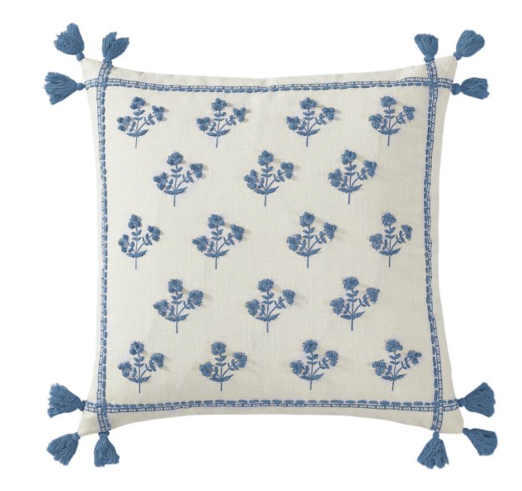 Secondly, this blue block floral print throw pillow from Walmart is perfect for a coastal grandmother design.