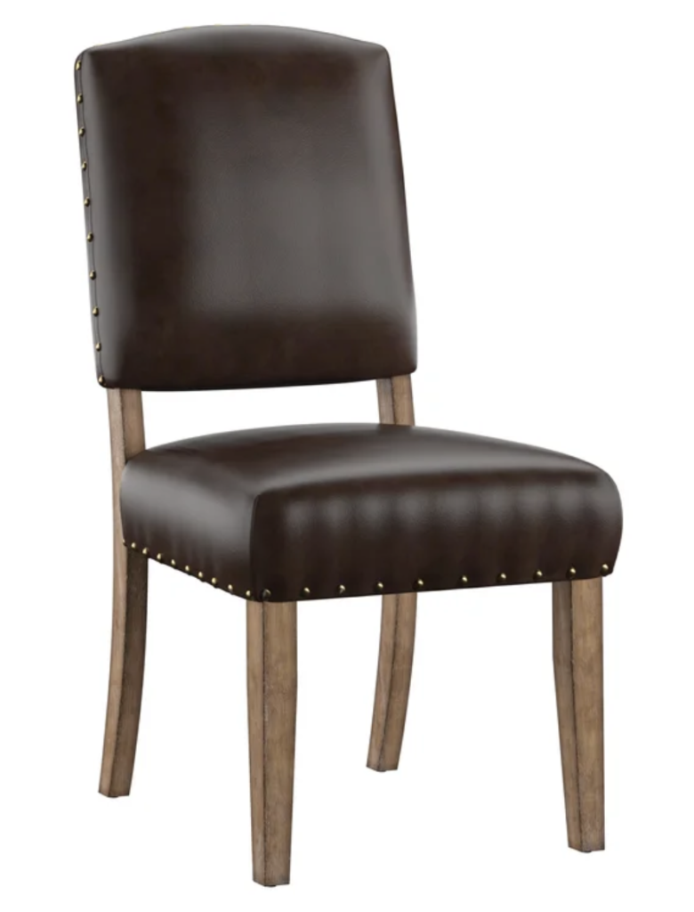 Thirdly, we have this gorgeous lake house dining room inspiration. To start re-creating this room, we have this marble and wood Trestle Dining Table from Wayfair. (It’s safe to say that I am obsessed.) Next, this set of Upholstered Side Chairs goes perfectly with the dining table. Furthermore, we have this pretty Shyann Oriental Gray Area Rug from Wayfair. Finally, this Light Wagon Wheel Chandelier from Wayfair is similar looking to the one in the photo but less expensive, that’s for sure.