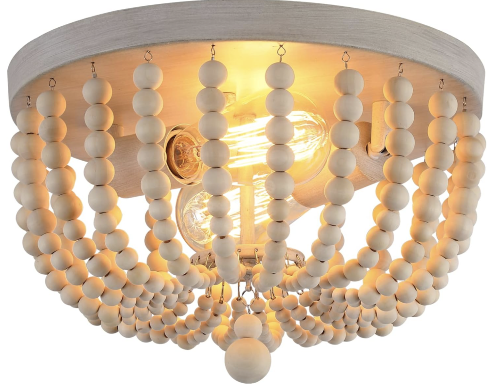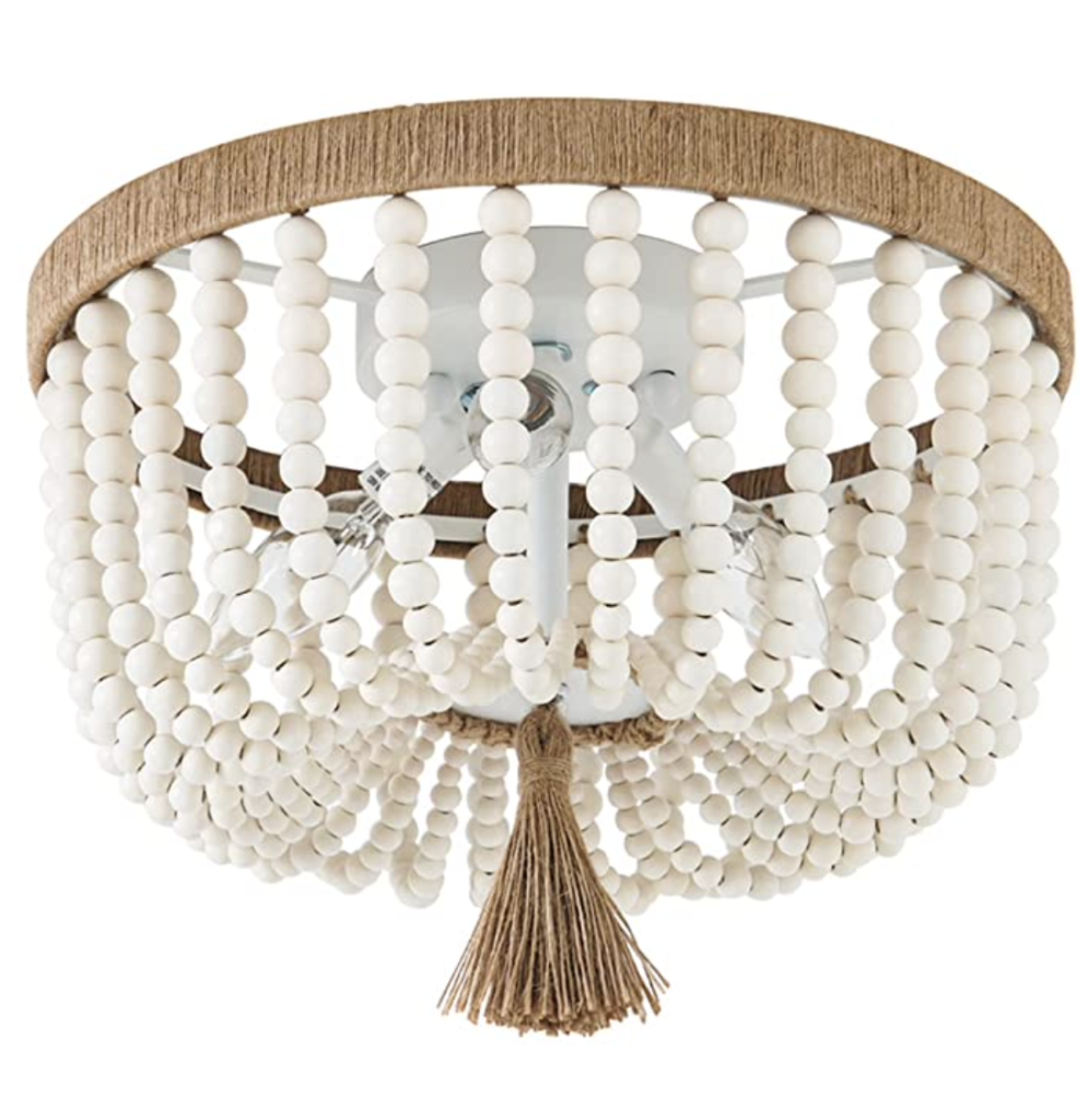 Secondly, when it comes to coastal light fixtures $100 can buy you a beautiful chandelier like the ones below! That is to say, all of these are so good! However, one that I am especially in love with is this VILUXY Bohemia Wood Beaded Flush Mount Ceiling Light from Amazon.