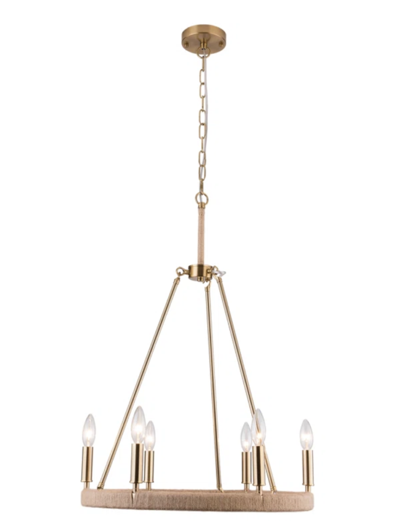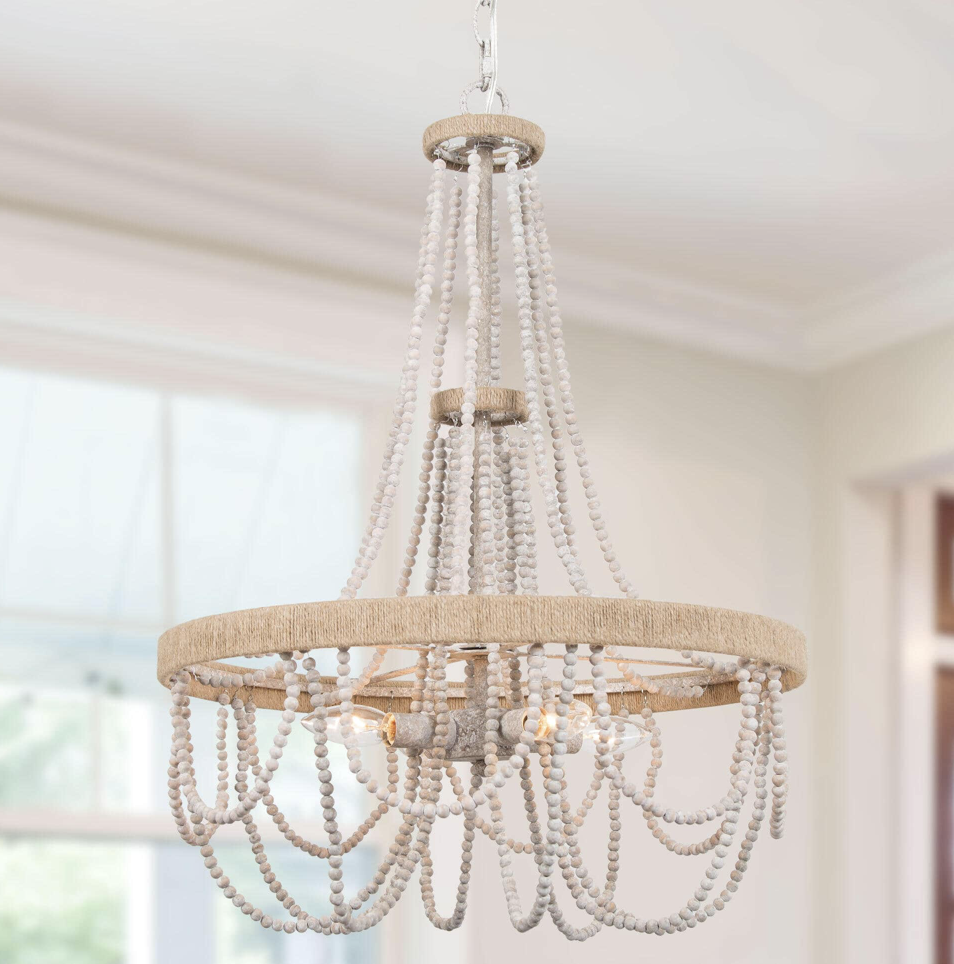 Moreover, moving on to the next price section we have these amazing chandelier options. Firstly, this Empire Chandelier Coastal Pendant Light with Wood Beaded and Rope Accents from Home Depot is so pretty. Another one of my favorites is this SAFAVIEH Whitley 4-Light Nautical Beaded Pendant from Walmart. In short, it is classy and elegant, plus it would pair beautifully with a coastal design look.