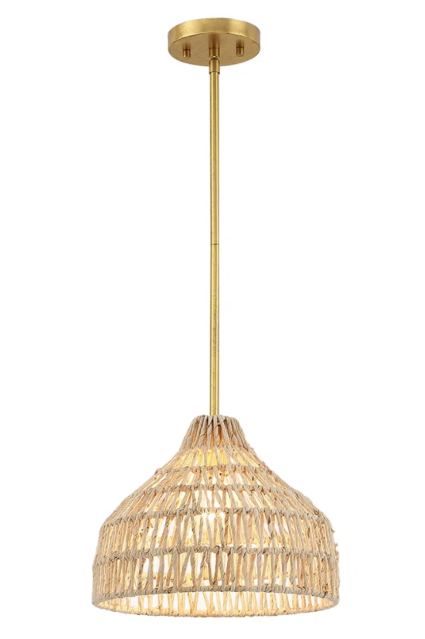 Another great option is this Conch shell shape Wicker Pendant Light fixture from Wayfair. These are absolutely ideal for a coastal design, such as in the kitchen over an island, a primary bathroom, or even in the living room.